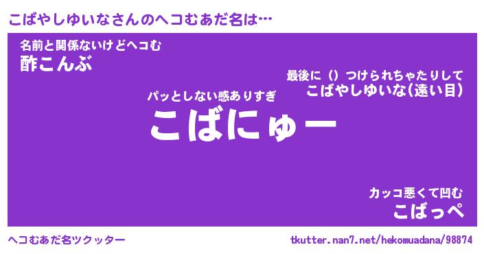 | 意味不明あだ名 | 『ペロリンこばやしゆいな』 |