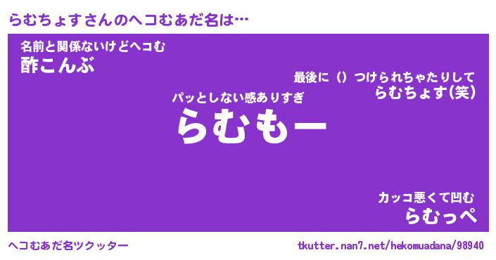 | 意味不明あだ名 | 『ペロリンらむちょす』 |