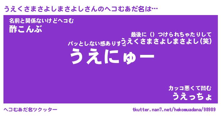 | 胡散臭い通販商品みたいなあだ名 | 『モテモテ間違いなし水晶球…その名も「うえくさまさよしまさよし」』 |