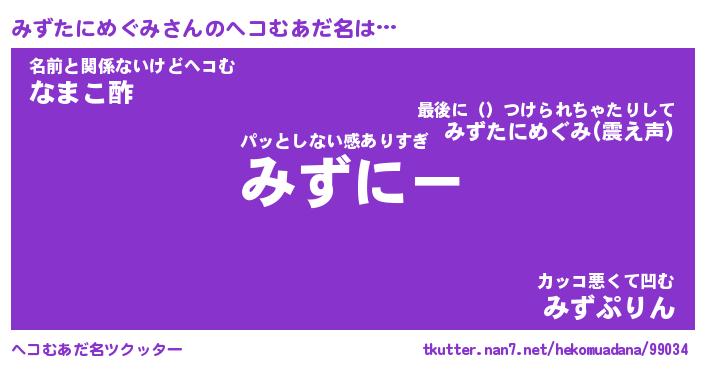 | ポケモン風あだ名 | 『ミズチュウ』『ミズタダネ』 |