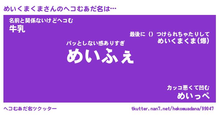 | 肩書あだ名 | 『めいくまくまCEO』『めいくまくま大統領』 |
