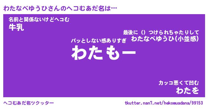 | 胡散臭い通販商品みたいなあだ名 | 『モテモテ間違いなし霊験あらたかなお札…その名も「わたなべゆうひ」』 |