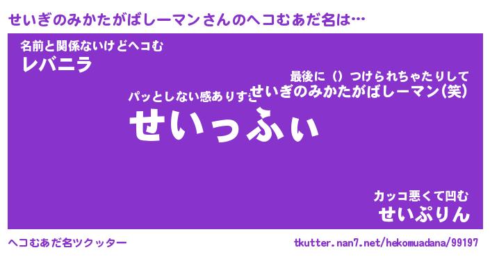 | 胡散臭い通販商品みたいなあだ名 | 『必ず成功する霊験あらたかなお札…その名も「せいぎのみかたがばしーマン」』 |
