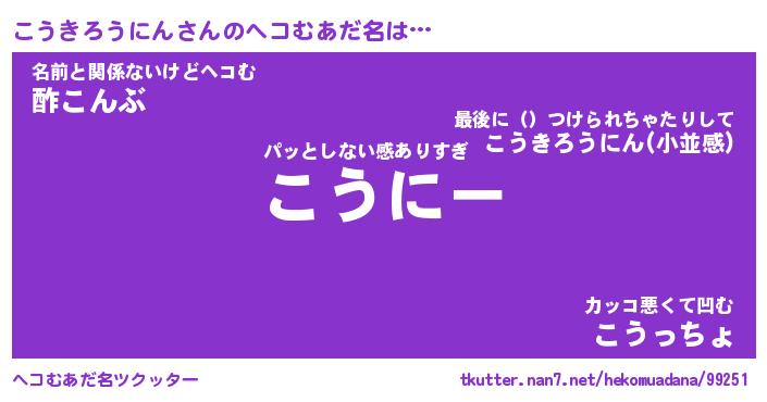 | 恥ずかしいあだ名 | 『プリティーこうきろうにん』『こうちん』 |