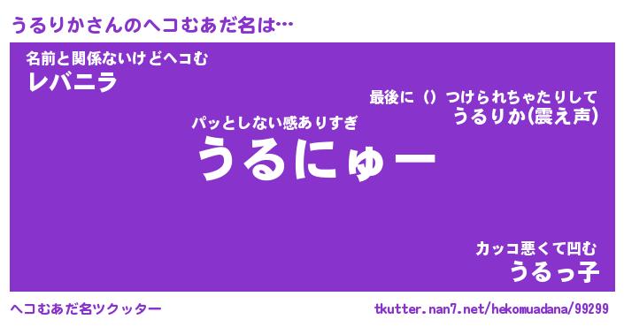 | 意味不明あだ名 | 『ペロリンうるりか』『永久保存うるりか』 |