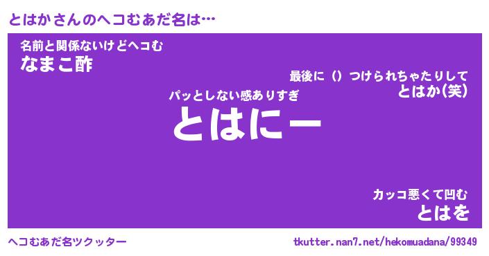 | ポケモン風あだ名 | 『トハチュウ』『トハカダネ』 |