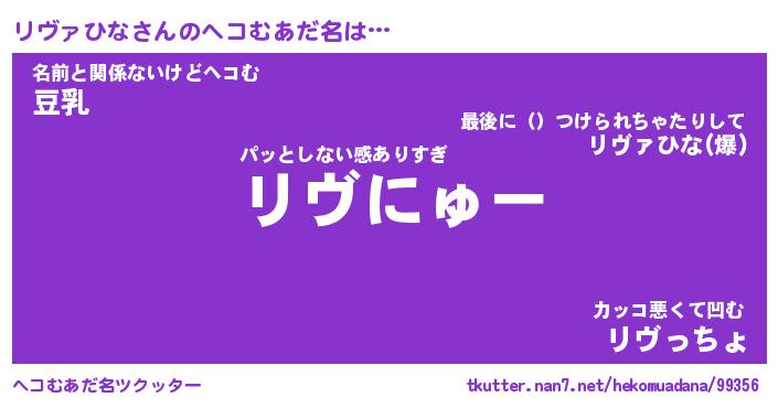 | 2回繰り返すあだ名 | 『リヴリヴ』『リリヴヴ』『うねうね』 |