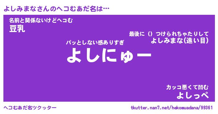 | ヒーロー風カッコイイあだ名 | 『スーパーヨシミマナ』『炎刃騎士ヨシ』 |