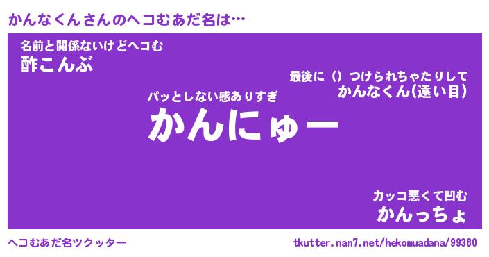 | 男性向けラノベタイトル風あだ名 | 『かんなくんの憂鬱』 |