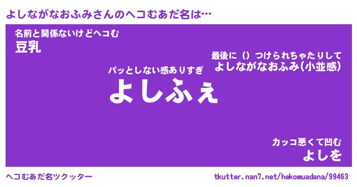 | 男性向けラノベタイトル風あだ名 | 『よしながなおふみの憂鬱』 |