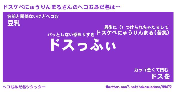 | 男性向けラノベタイトル風あだ名 | 『ドスケベにゅうりんまるの憂鬱』 |