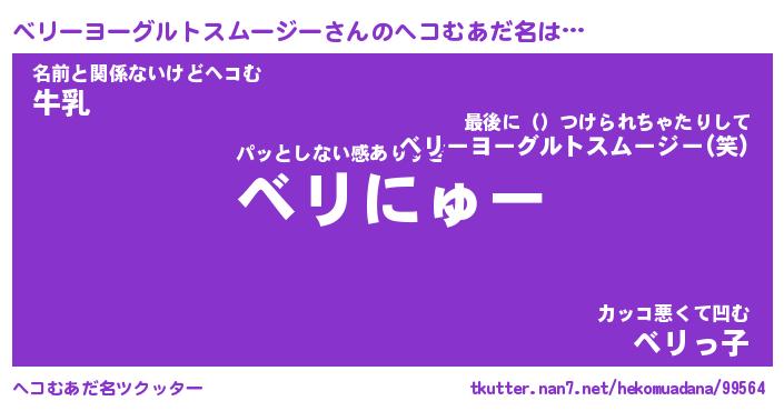 | 男性向けラノベタイトル風あだ名 | 『ベリーヨーグルトスムージーの憂鬱』 |