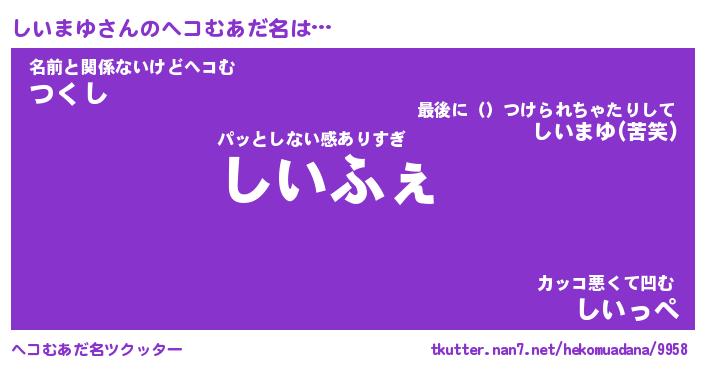 | ファンタジー風あだ名 | 『シイフェル』『エターナルシイマユー』 |