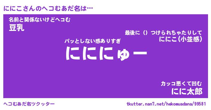 | ポケモン風あだ名 | 『ニニチュウ』『ニニコダネ』 |