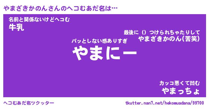 | 男性向けラノベタイトル風あだ名 | 『やまざきかのんの憂鬱』 |