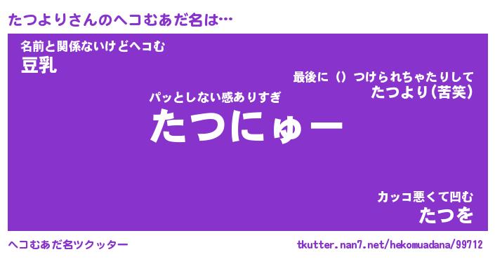 | 男性向けラノベタイトル風あだ名 | 『たつよりの憂鬱』 |