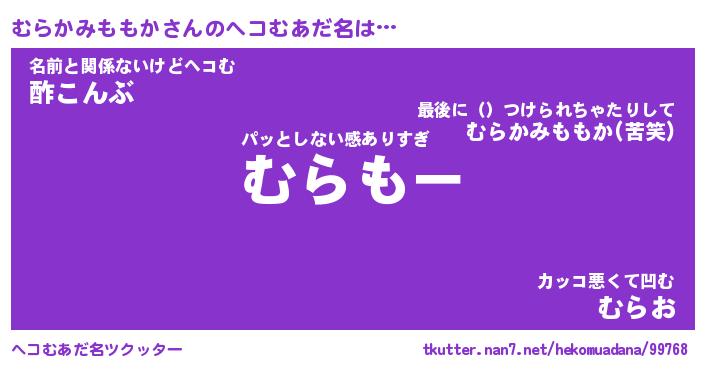 | 恥ずかしいあだ名 | 『プリティーむらかみももか』『むらちん』 |