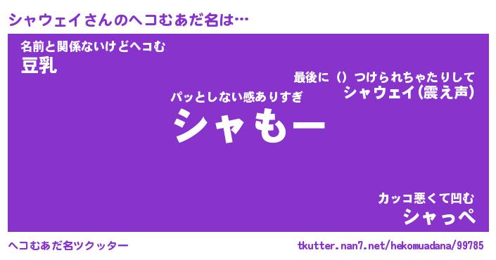 | ファンタジー風あだ名 | 『シャフェル』『エターナルシャウェイー』 |