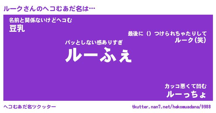 | ヒーロー風カッコイイあだ名 | 『スーパールーク』『ウルトラルークマン』 |