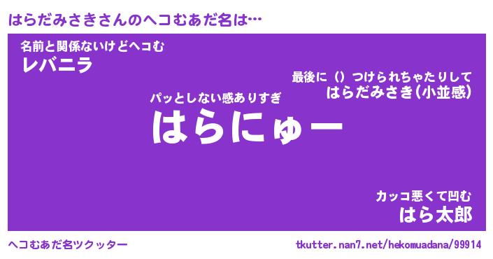 | 意味不明あだ名 | 『ペロリンはらだみさき』 |