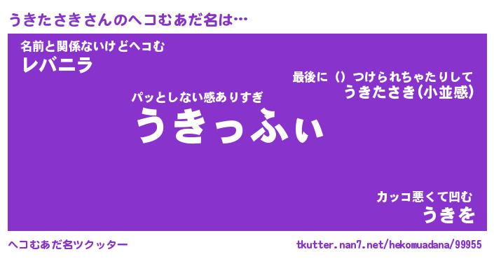 | ファンタジー風あだ名 | 『ウキフェル』『エターナルウキタサキー』 |