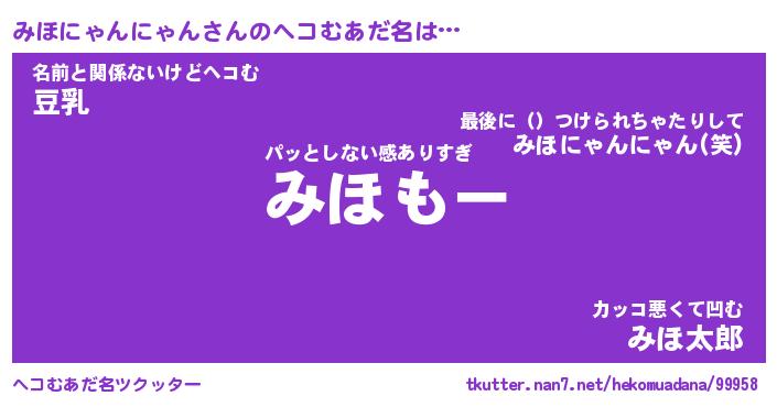 | 胡散臭い通販商品みたいなあだ名 | 『億万長者になれる霊験あらたかなお札…その名も「みほにゃんにゃん」』 |