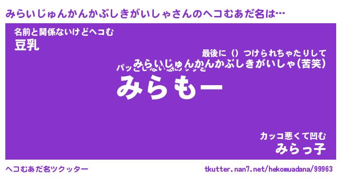 | 2回繰り返すあだ名 | 『みらみら』『みみらら』『ぬるぬる』 |