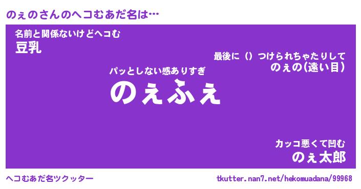 | 意味不明あだ名 | 『ペロリンのぇの』『のぇのフォーエバー』 |