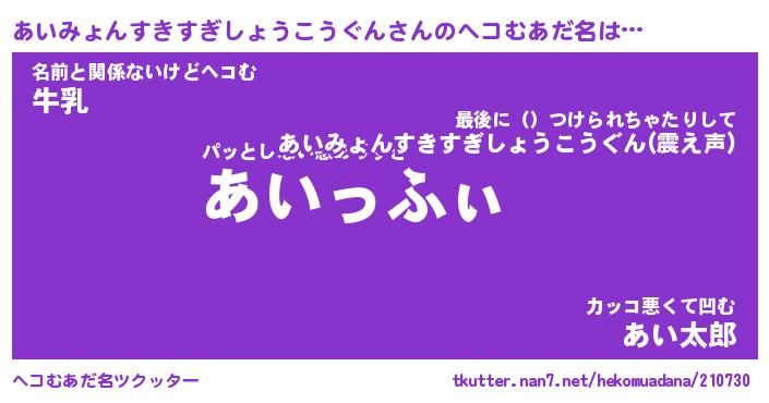 | 欧米人風あだ名 | 『マイケルあいみょんすきすぎしょうこうぐん』 |