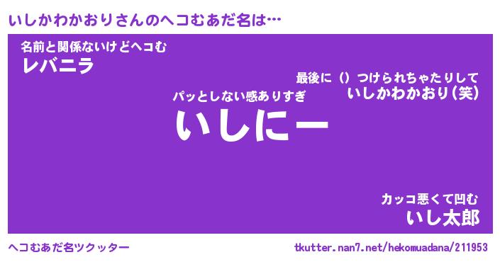 | 意味不明あだ名 | 『ペロリンいしかわかおり』 |