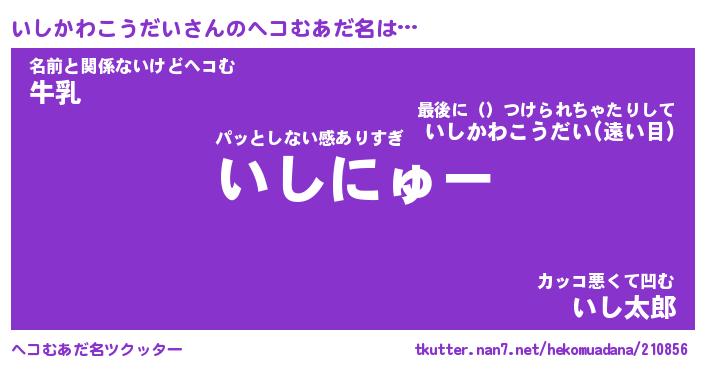| 意味不明あだ名 | 『ペロリンいしかわこうだい』 |