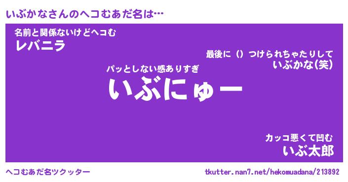 | 意味不明あだ名 | 『ペロリンいぶかな』『永久保存いぶかな』 |