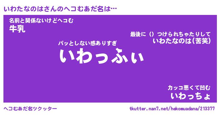 | ヒーロー風カッコイイあだ名 | 『スーパーイワタナノハ』『天弓騎士イワ』 |