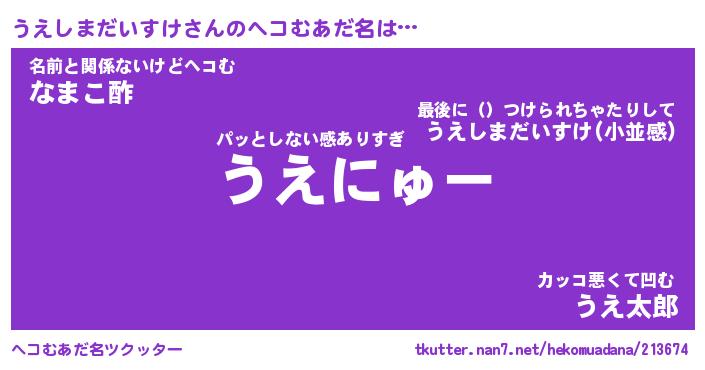 | 胡散臭い通販商品みたいなあだ名 | 『億万長者になれる水晶球…その名も「うえしまだいすけ」』 |