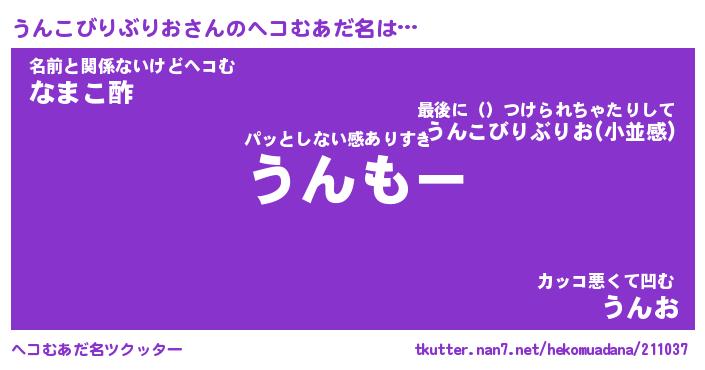 | 2回繰り返すあだ名 | 『うんうん』『ううんん』『ぬるぬる』 |