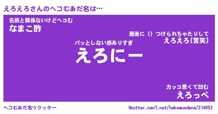 | 男性向けラノベタイトル風あだ名 | 『えろえろの憂鬱』 |