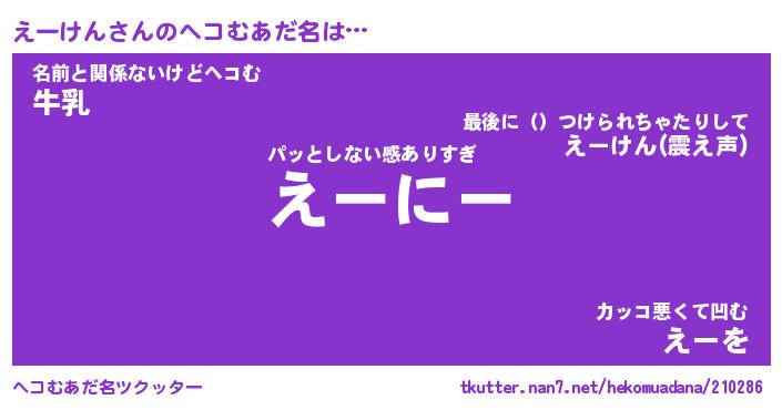 | 意味不明あだ名 | 『ペロリンえーけん』『永久保存えーけん』 |