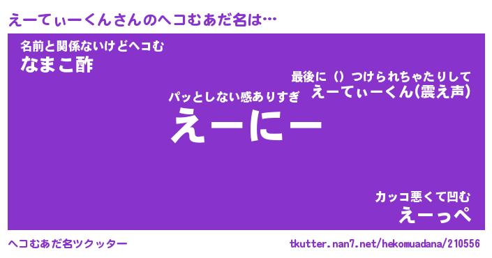 | 意味不明あだ名 | 『ペロリンえーてぃーくん』 |