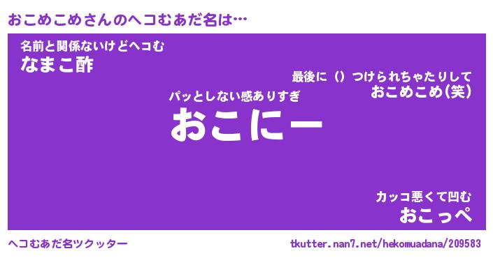 | ファンタジー風あだ名 | 『オコフェル』『エターナルオコメコメー』 |