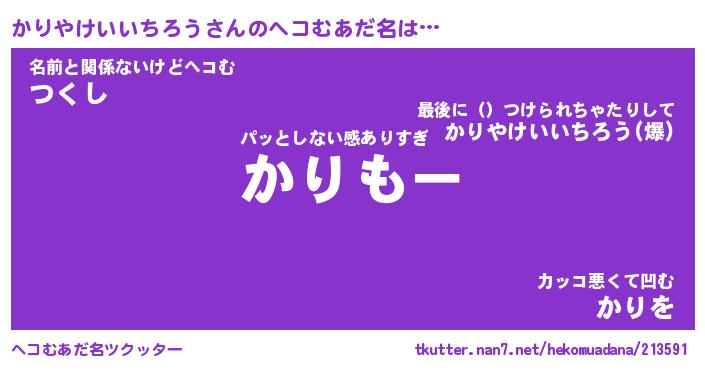 | 男性向けラノベタイトル風あだ名 | 『かりやけいいちろうの憂鬱』 |
