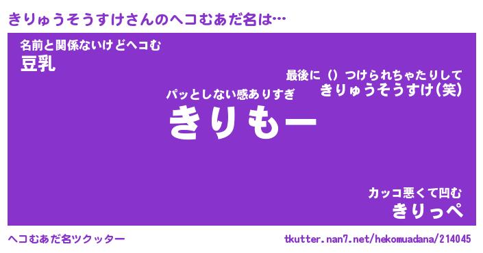 | 意味不明あだ名 | 『ペロリンきりゅうそうすけ』 |