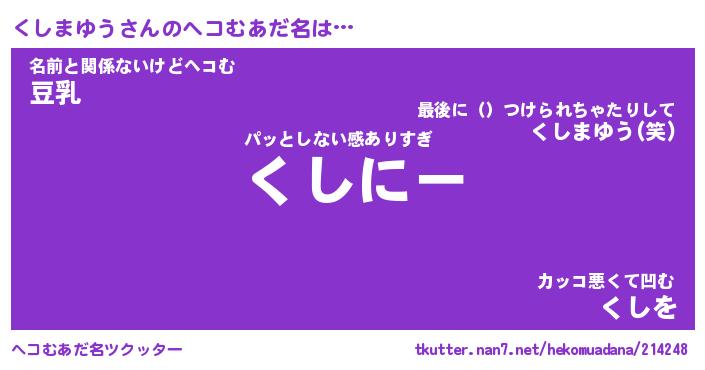 | ヒーロー風カッコイイあだ名 | 『スーパークシマユウ』『魔戒騎士クシ』 |