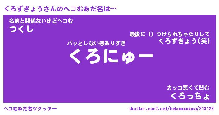 | 胡散臭い通販商品みたいなあだ名 | 『モテモテ間違いなし水晶球…その名も「くろずきょう」』 |