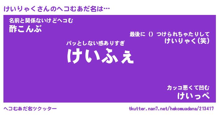 | 2回繰り返すあだ名 | 『けいけい』『けけいい』『あんあん』 |