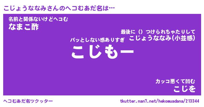 | 胡散臭い通販商品みたいなあだ名 | 『モテモテ間違いなし霊験あらたかなお札…その名も「こじょうななみ」』 |