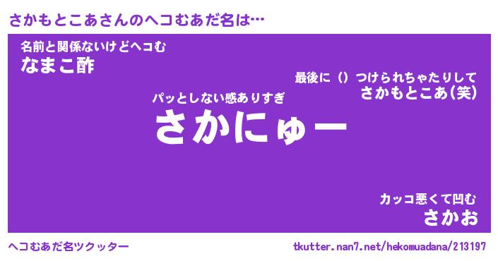 | 意味不明あだ名 | 『ペロリンさかもとこあ』 |