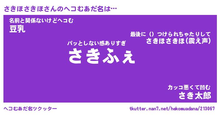 | ヒーロー風カッコイイあだ名 | 『スーパーサキホサキホ』『炎刃騎士サキ』 |