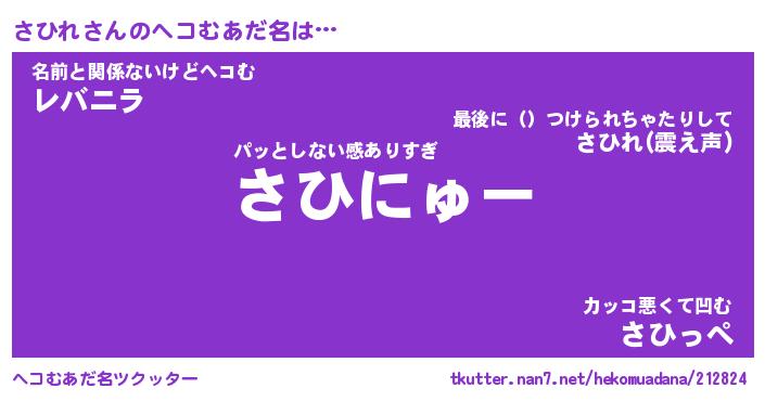 | ポケモン風あだ名 | 『サヒチュウ』『サヒレダネ』 |