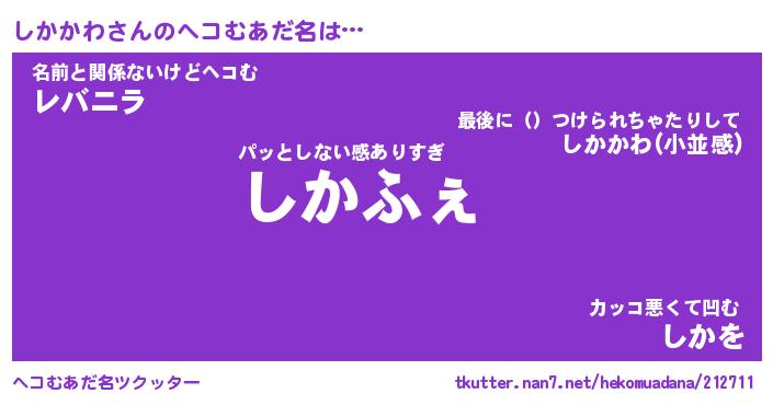 | 意味不明あだ名 | 『ペロリンしかかわ』『永久保存しかかわ』 |