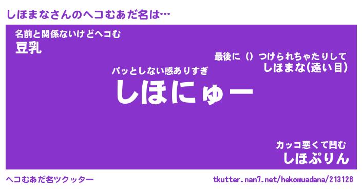 | 2回繰り返すあだ名 | 『しほしほ』『ししほほ』『ぬぷぬぷ』 |
